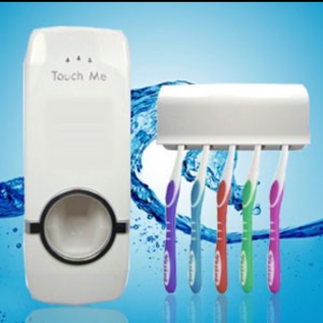 Máy lấy kem tự động kèm giá đỡ bàn chải chống các bụi bẩn các loại côn trùng bám vào bàn chải,khô thoáng khi chải răng xong không lo bị đọng nước,Lấy kem b chỉ cần để bàn chải vào lỗ đẩy nhẹ kem sẽ tự nhã ra