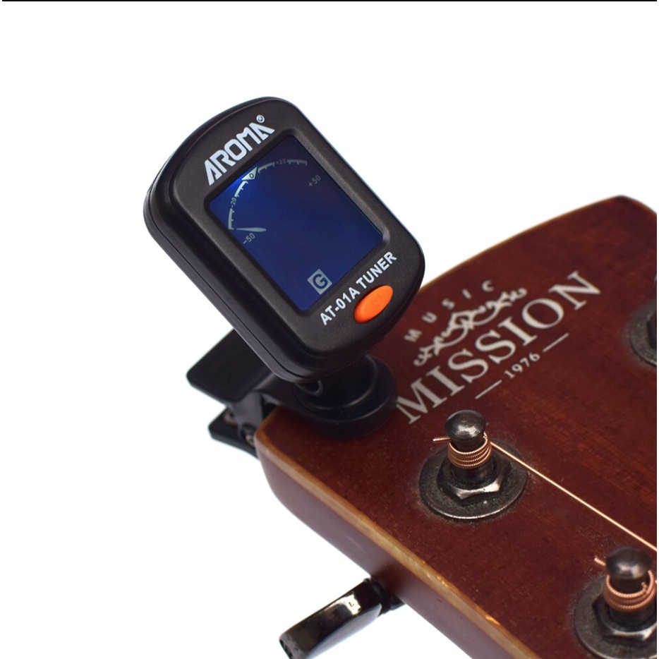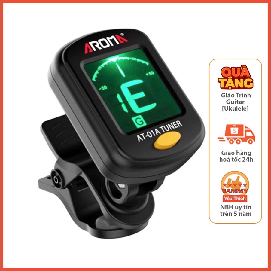 Máy Lên Dây Tuner Aroma AT01A cho đàn Guitar Ukulele Bass Violin bao gồm pin
