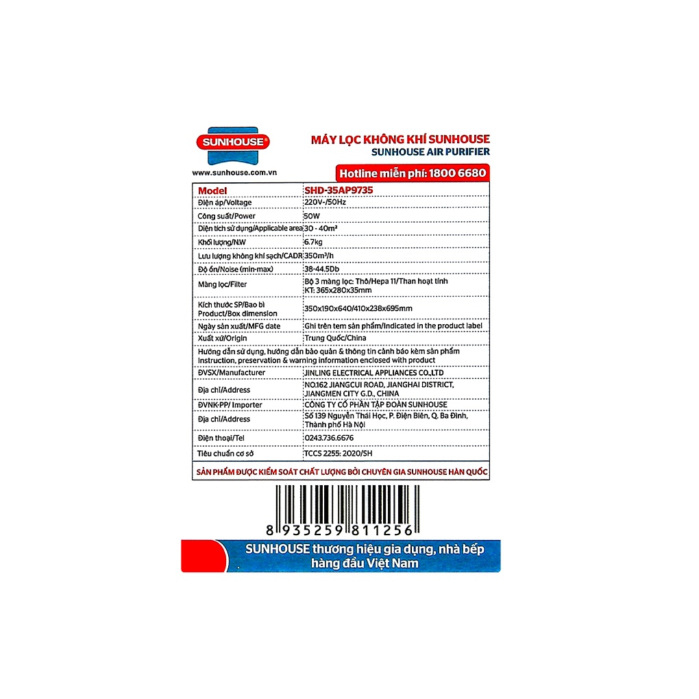 Máy lọc không khí Sunhouse SHD-35AP9735