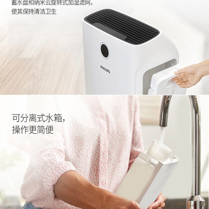 - Series 3000 AC2726/00 cũng là một máy tạo độ ẩm. Nó có công nghệ Nanocloud làm cho không khí ẩm và giảm khô. Không khí mang lại cảm giác dễ chịu, giúp làn da của bạn vẫn mềm mượt và giữ được độ ẩm suốt cả ngày. Máy tạo độ ẩm có công suất lên tới 600 ml/giờ và 4 mức độ ẩm được thiết lập sẵn.