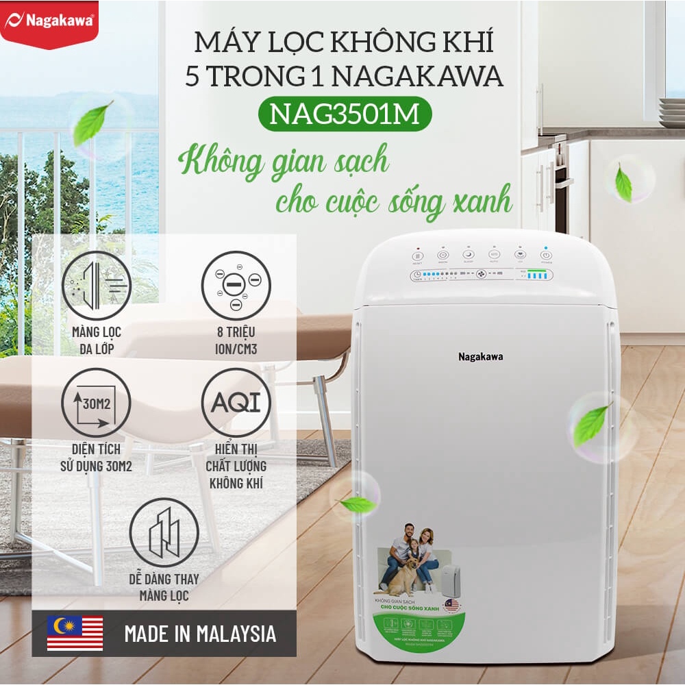 Máy Lọc Không Khí 5 Trong 1 Nagakawa NAG3501M