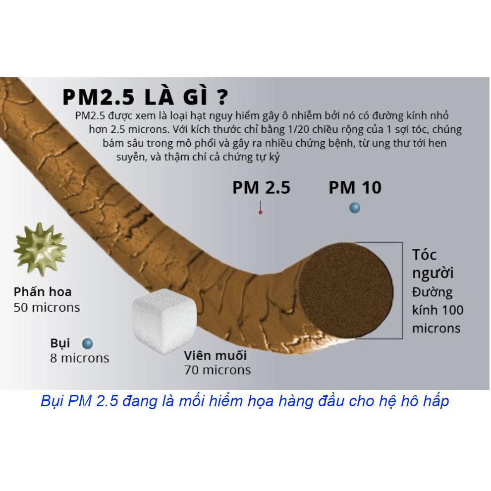 - Loại bỏ hoàn toàn được bụi mịn PM2.5 và PM1.0 (Hai loại bụi nguy hiểm nhất đến hệ hô hấp hiện nay).