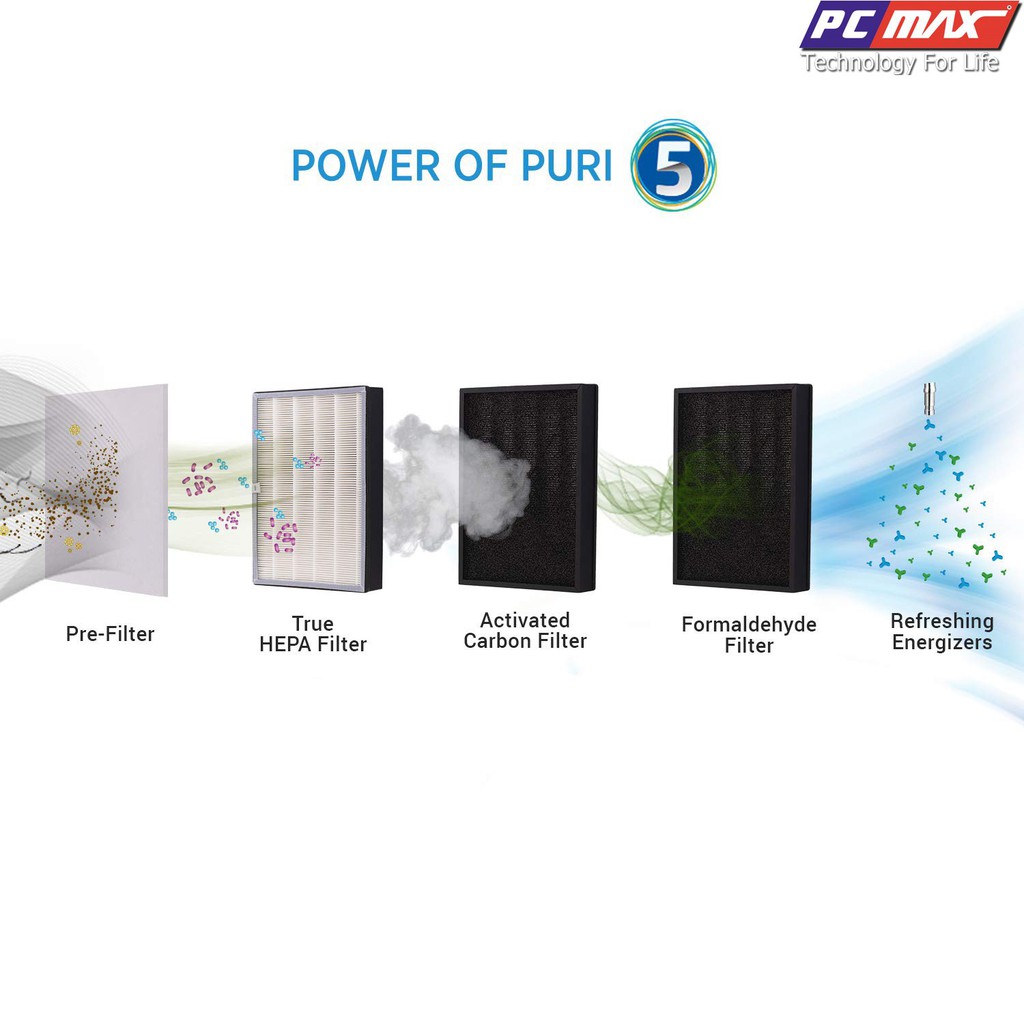 Máy lọc không khí sử dụng công nghệ lọc HEPA 5 lớp, có thể lọc được khói bụi, lọc bụi siêu vi, cùng với đó là bộ xúc tác lạnh cho không khí trở nên mát lành.