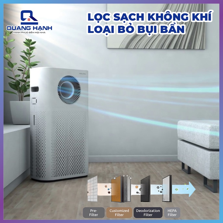 Thiết kế dạng tháp siêu mỏng cho diện tích sử dụng lên tới 50m2Giải pháp không khí sạch với 4 bước lọc loại bỏ 99.99% bụi mịn PM 0.01