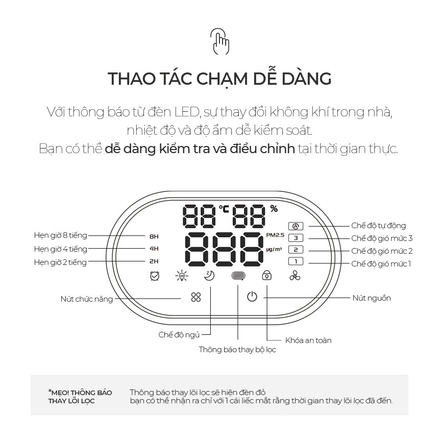 - 3 màng lọc loại bỏ các loại bụi mịn và các chất gây mùi có trong không khí