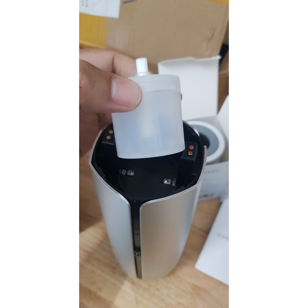 Hướng dẫn sử dụng: Đặt máy lọc không khí trong ngăn đựng cốc xe, kết nối bật lửa với cáp USB và nhấn nút nguồn.