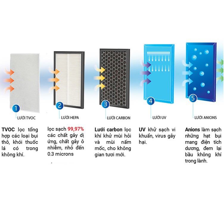 --Sử dụng bộ lọc HEPA 5 lớp