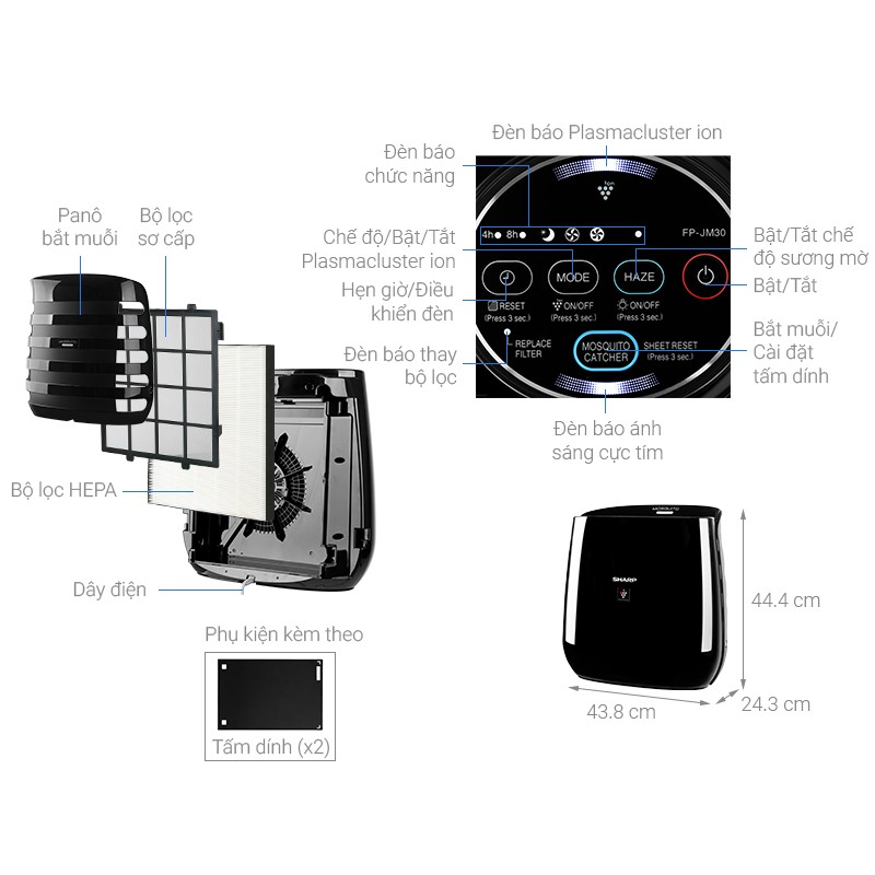 Giới thiệu [Mã ELHA22 giảm 5% đơn 300K] Máy Lọc Không Khí Và Bắt Muỗi Sharp FP-JM30V-B – Hàng Chính Hãng