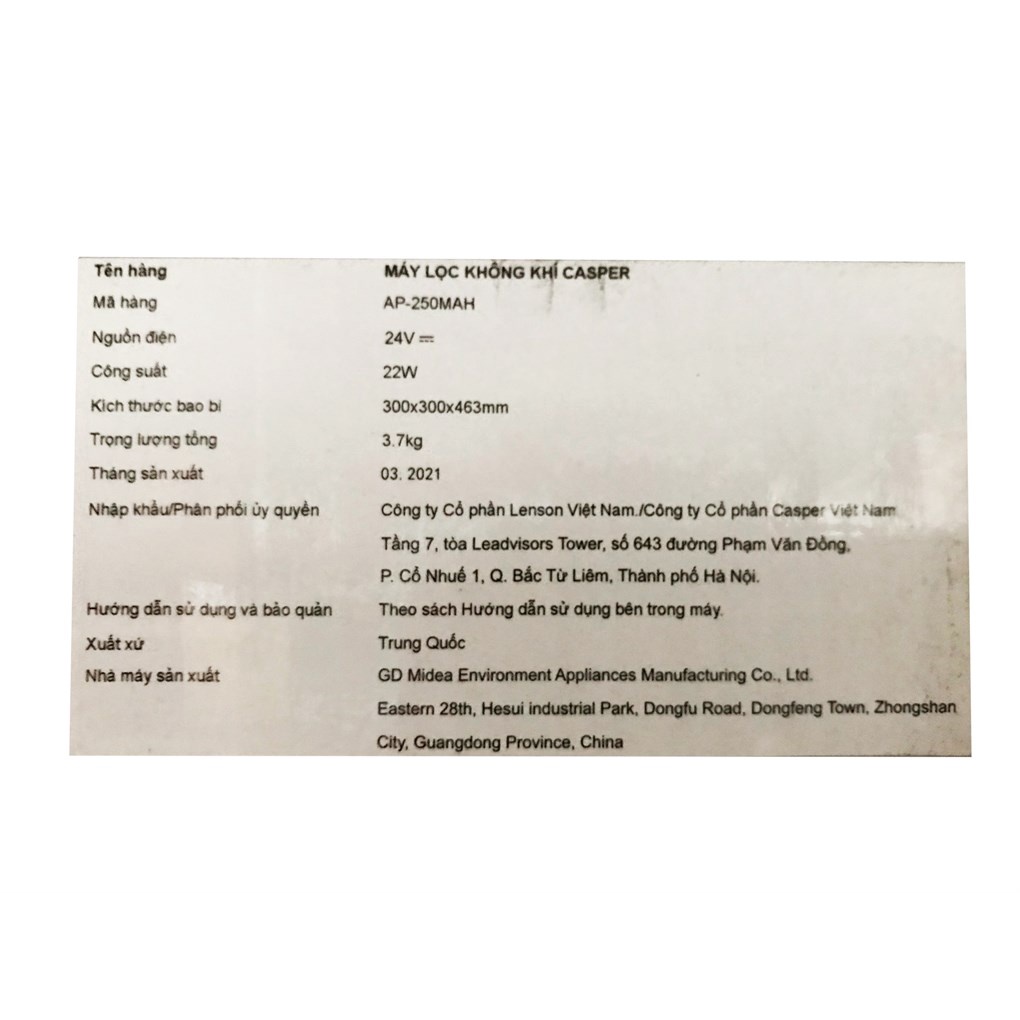 Thiết Bị Điện Gia Dụng > Thiết bị điện gia dụng nhỏ > Thiết bị xử lí không khí > Máy lọc không khí || [Mã ELHA22 giảm 5% đơn 300K] Máy lọc không khí Casper AP-250MAHCòn hàng
