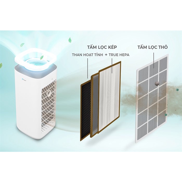 •Loại bỏ mùi hôi, vi khuẩn, bụi mịn PM 0.3 hiệu quả đến 99.97% nhờ màng lọc 3 lớp