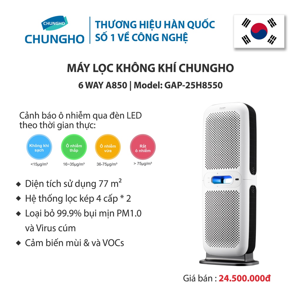 Giới thiệu [Mã ELHA22 giảm 5% đơn 300K] Máy lọc không khí ChungHo 6 Way A850 HEPA