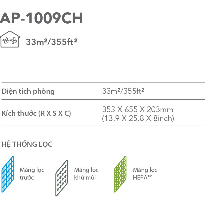 THÔNG SỐ SẢN PHẨM : Máy lọc không khí Coway AP-1009 CH