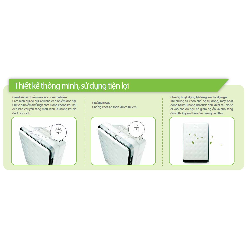 - 5 Màng lọc: Màng lọc trước, Màng lọc Non Woven, Màng lọc khử ozone, Màng lọc khử mùi, Màng lọc HEPA độc quyền
