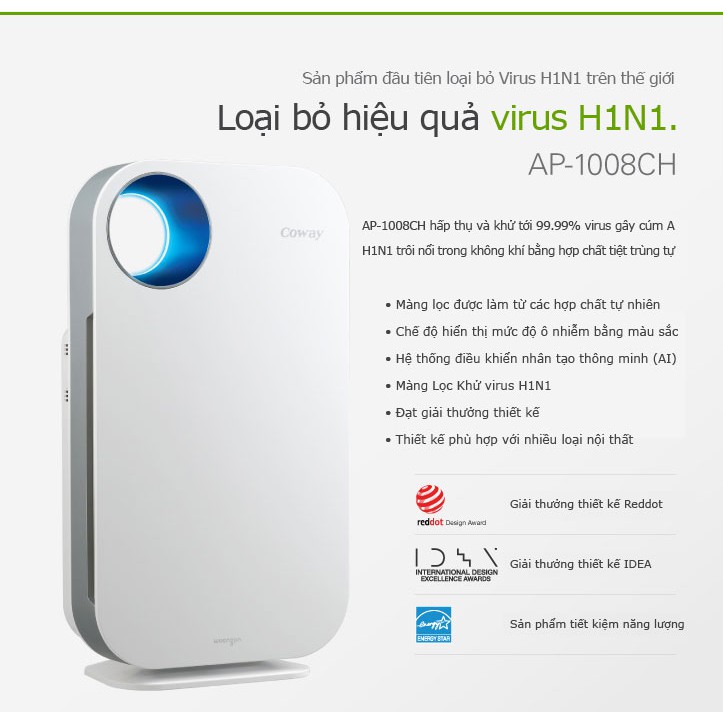 Mô tả chung sản phẩm: Máy lọc không khí Coway AP-1008CH