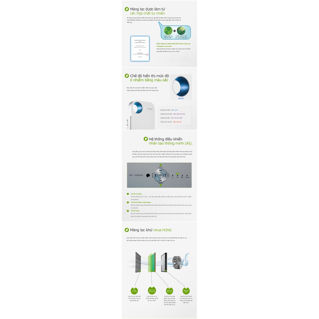 Giới thiệu [Mã ELHA10 giảm 6% đơn 5TR] Máy lọc không khí Coway AP-1008CH