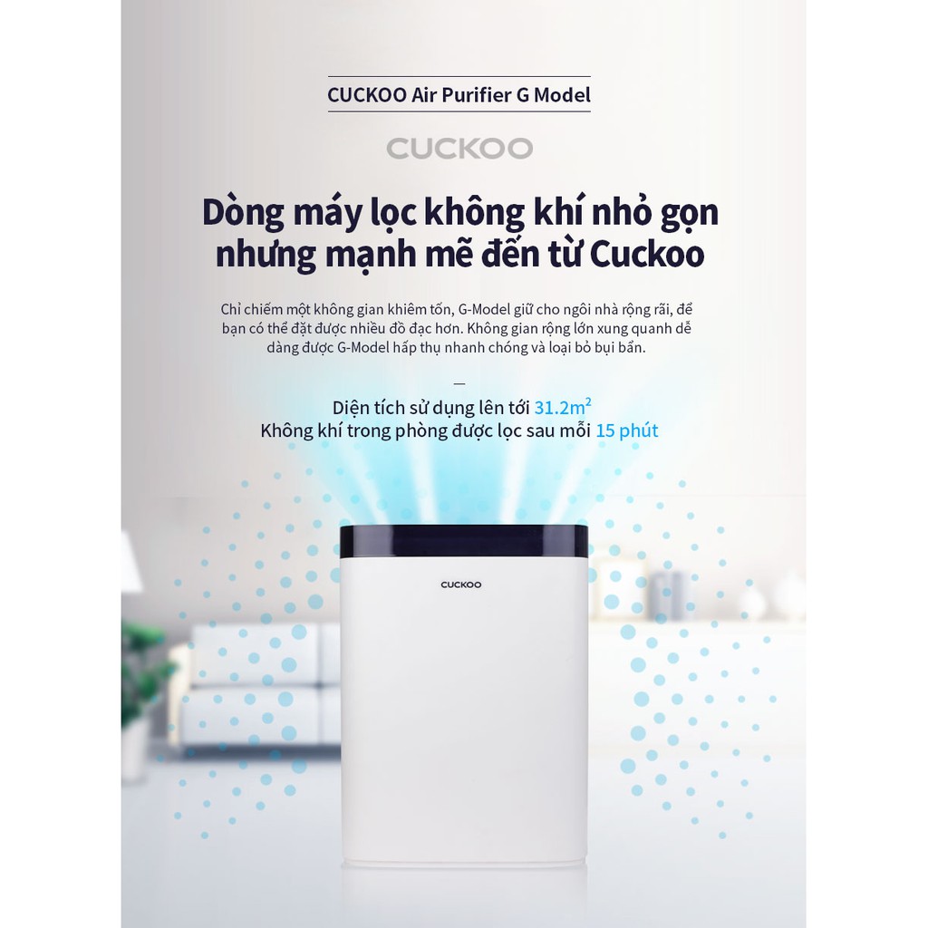 Giới thiệu Máy lọc không khí Cuckoo CAC-G0910FWH - Dành cho không gian 30m2 - Màng lọc Carbon chủ động - Tiêu chuẩn Hàn Quốc