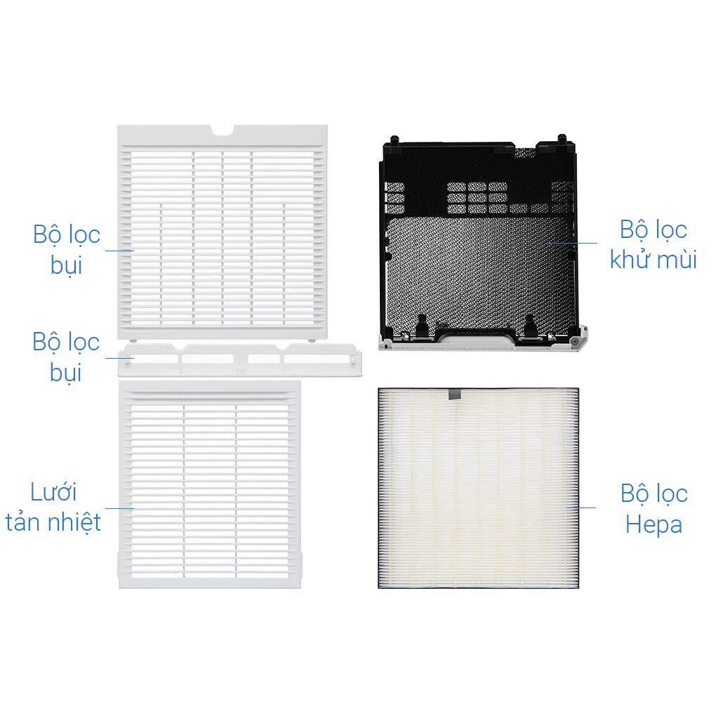 - Phin lọc tĩnh điện HEPA lọc bụi hiệu quả hơn nhờ vào lực tĩnh điện, loại bỏ 99,97% các hạt bụi có kích thước 0.3 μm