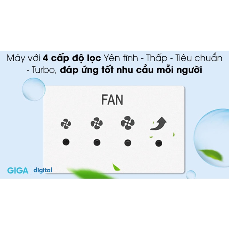 ✅ Bảng điều khiển nút nhấn với đèn hiển thị tiện quan sát, dễ sử dụng. Máy lọc với 4 cấp độ Yên tĩnh – Thấp – Tiêu chuẩn – Turbo