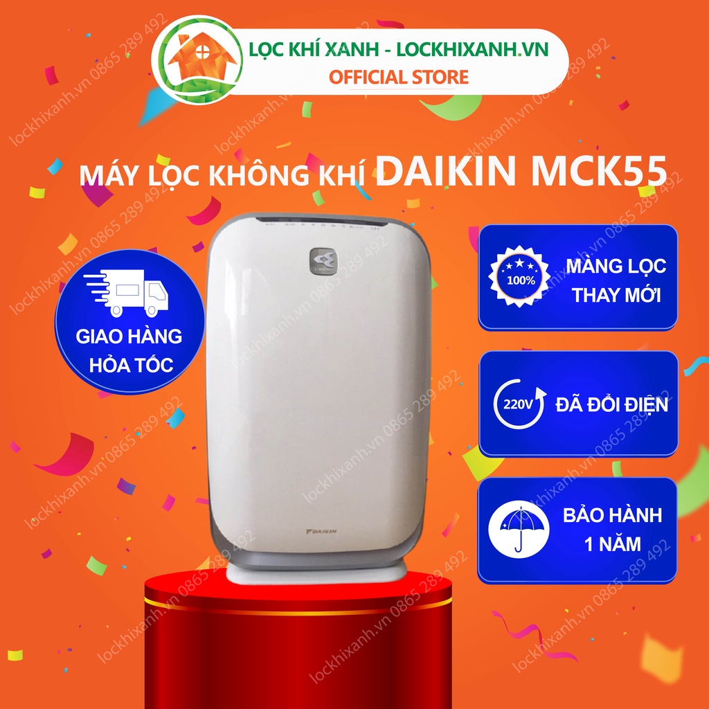 Máy lọc không khí gia đình Daikin MCK55, khử mùi, lọc bụi mịn, diệt khuẩn, bù ẩmKhi nhắc đến Máy lọc không khí gia đình tốt nhất, ắt hẳn những người dùng lâu năm đều nhắc đến ông vua máy lọc không khí Daikin MCK55. Máy có công suất hút lớn 5.5m3/phút với hút 3 cửa gió đằng trước, kèm theo công nghệ nhiễm điện màng lọc Daikin streamer, kèm theo các tấm lọc phổ thông dễ kiếm khác như màn HEPA, màng than hoạt tính, màng nước bù ẩm. Hãy cùng shop lọc khí xanh tìm hiểu về dòng Máy lọc không khí gia đình Daikin MCK/TCK/ACK55.