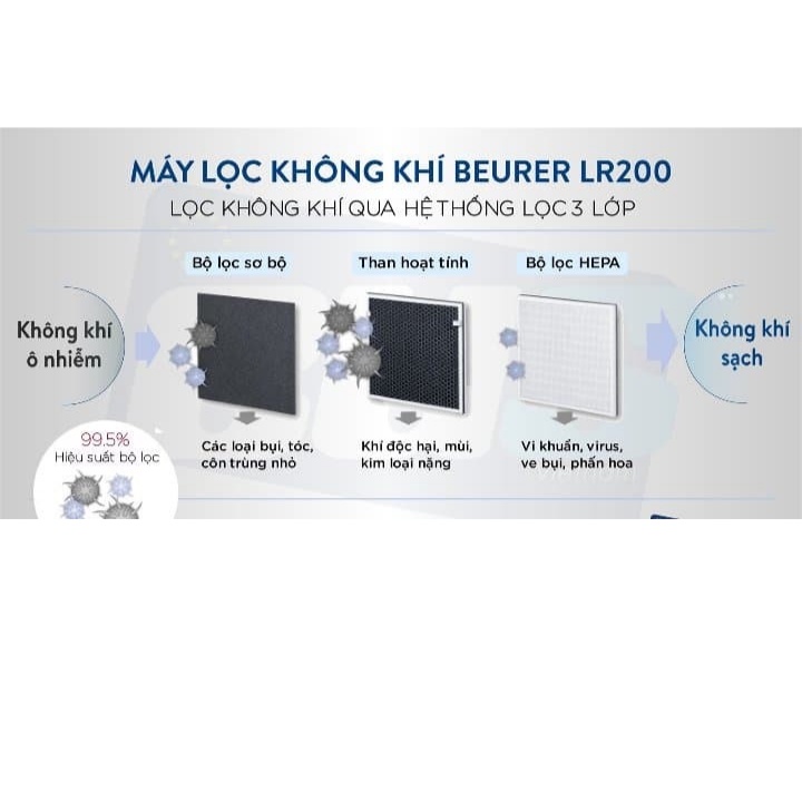 Thiết Bị Điện Gia Dụng > Thiết bị điện gia dụng nhỏ > Thiết bị xử lí không khí > Máy lọc không khí || Máy lọc không khí diệt khuẩn bằng tia cực tím - Beurer LR200 - hiệu suất lọc lên đến 99.5%Còn hàng