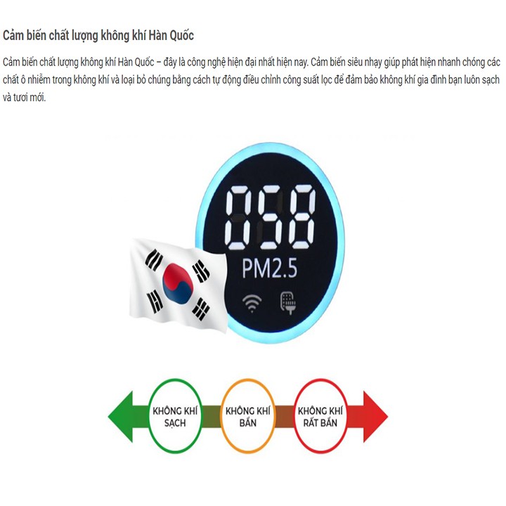 • Bộ lọc HEPA loại bỏ 99.95%, bụi mịn PM2.5, chất gây dị ứng