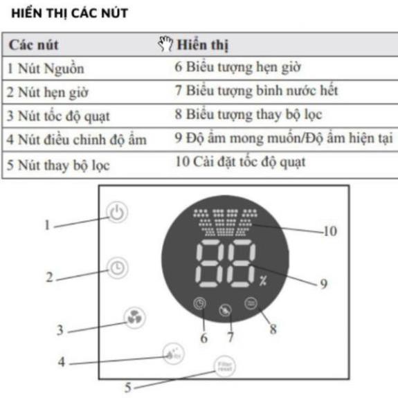 - Có thể lựa chọn độ ẩm lý tưởng cho gia đình bạn (40-80 %)