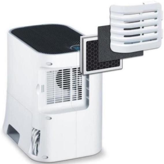 - Lọc không khí với bộ lọc combi (tấm lọc cacbon hoạt tính giúp loại bỏ các loại khí độc hại và mùi khó chịu, tấm lọc HEPA loại E 10 chống lại các phần tử như vi khuẩn, vi rút, phấn hoa và bụi cực nhỏ)