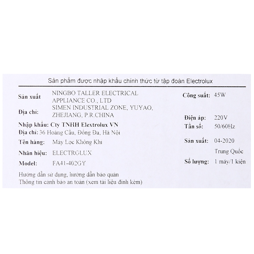 Thiết Bị Điện Gia Dụng > Thiết bị điện gia dụng nhỏ > Thiết bị xử lí không khí > Máy lọc không khí || [Mã ELHA22 giảm 5% đơn 300K] Máy lọc không khí Electrolux FA41-402GYCòn hàng