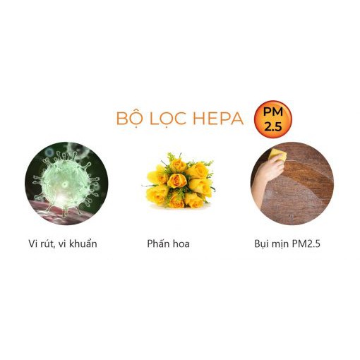 4/ Màng lọc HEPA (Phát triển bởi ỦY BAN NĂNG LƯỢNG NGUYÊN TỬ HOA KỲ), nó có thể loại bỏ các chất gây kích ứng, virus, vi khuẩn và các loại hạt bụi siêu nhỏ, phấn hoa và các phân tử độc hại.
