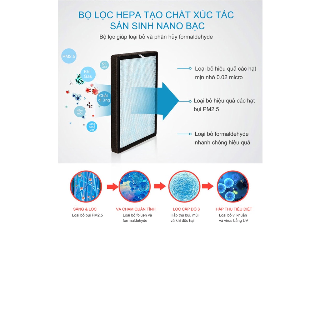 Màn hình hiển thị độ nét cao, lọc nhanh, lọc công nghệ HEPA, giải phóng ion oxy âm, chế độ ngủ + chức năng hẹn giờ, lưu thông gió ba chiều