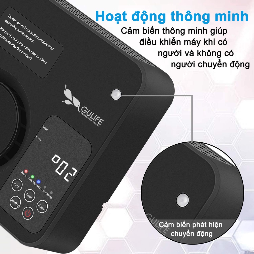 GML-38Oz có cảm biến thân nhiệt . Khi cảm biến khử mùi cảm nhận được người hoặc vật nuôi trong phòng, Máy tự động hoạt động sản sinh ozone và ion âm . Nếu máy không phát hiện ra bất kỳ ai, sẽ chuyển sang chế độ ngủ để tiết kiệm điện.Thêm chế độ 2 là chế độ thủ công mạnh mẽ hơn cho các khu vực không có người. (Lưu ý: Vui lòng đọc hướng dẫn trước khi sử dụng chế độ thủ công).