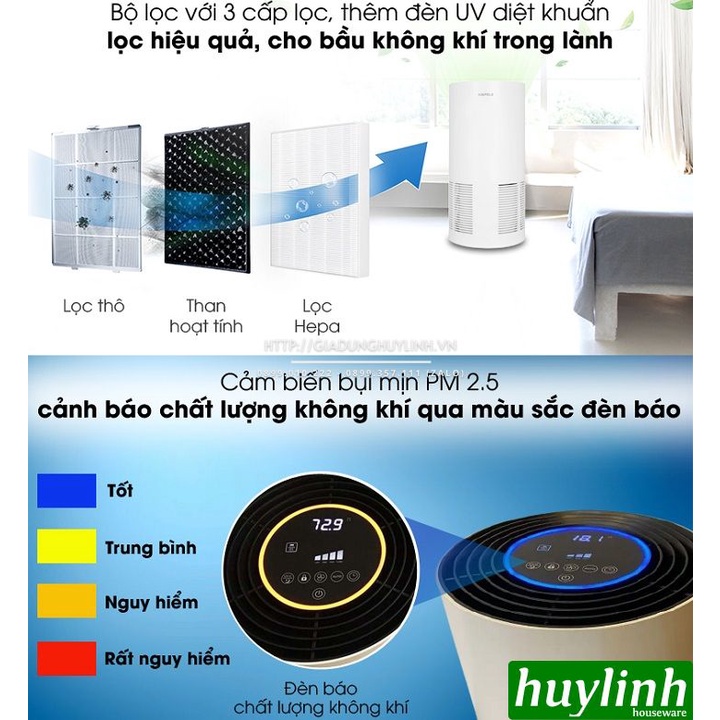 - Tích hợp đa lưới lọc: lưới lọc bên ngoài,lưới lọc HEPA và tia UV.