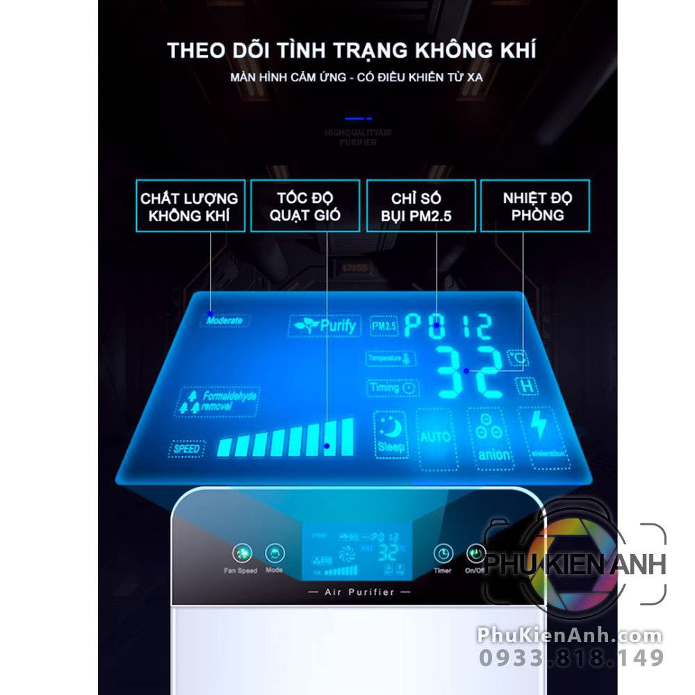 - Chức năng chính: lọc không khí, tạo ion âm, loại bỏ khói bụi, phân hủy Formaldehyd và Benzen, khử trùng không khí bằng tia UV