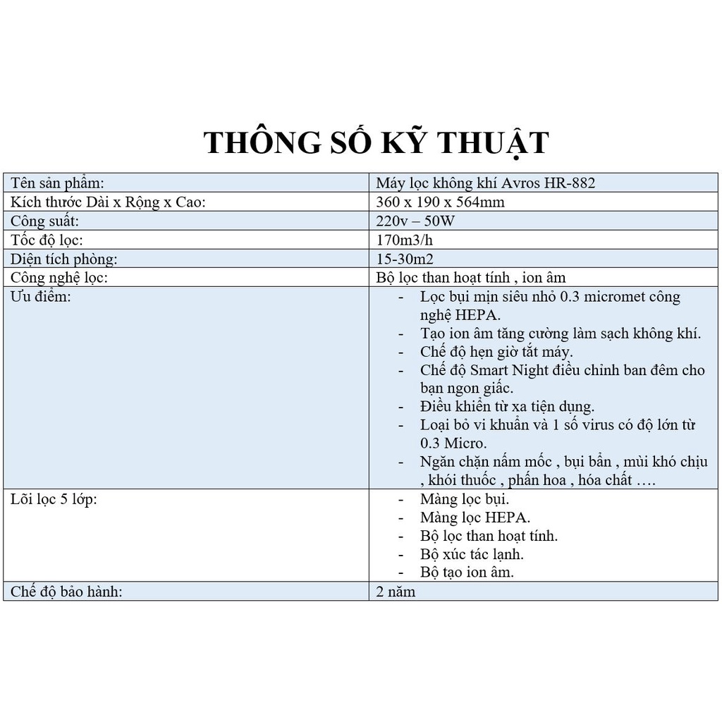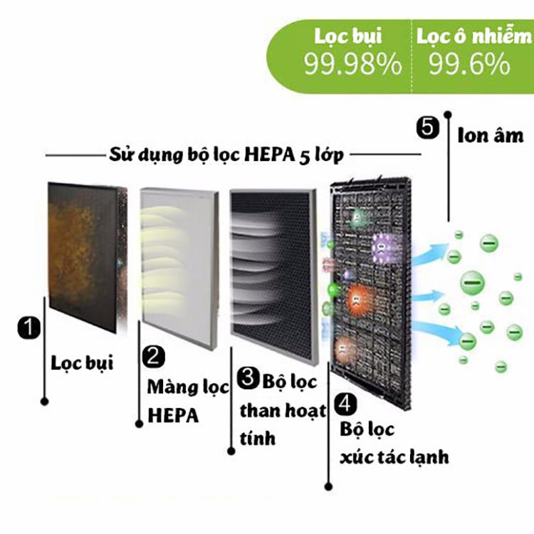 -- Sử dụng công nghệ lọc HEPA 5 lớp
