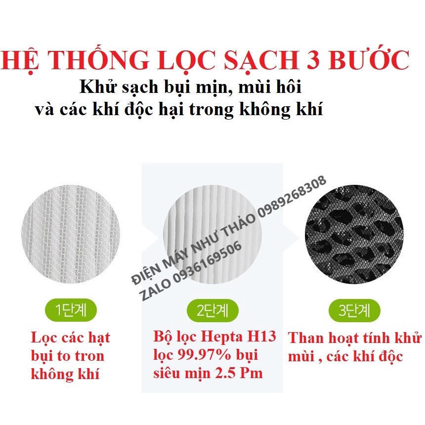 Hệ thống lọc cao cấp 360 độ , màng lọc Hepta H13 cao cấp có thể lọc 99.97% bụi mịn 2.5Pm. Khử mùi hôi