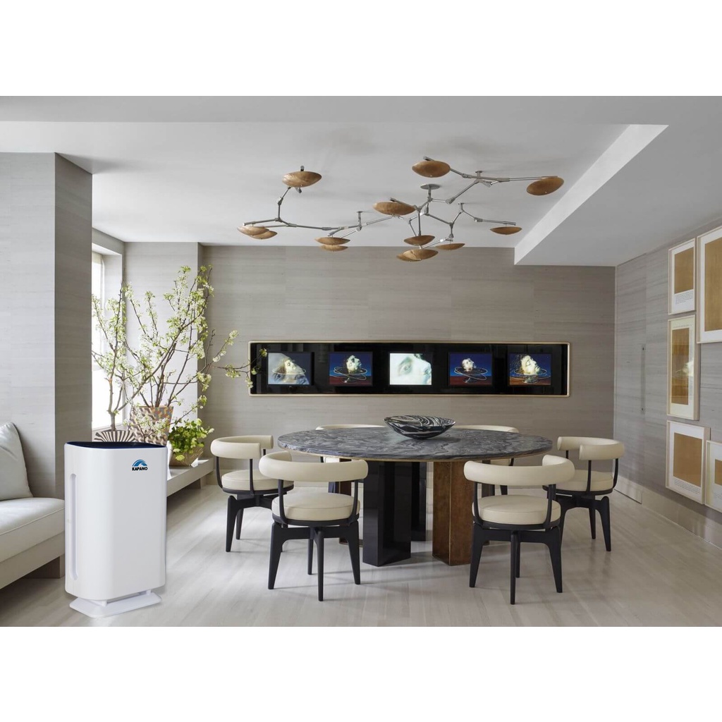 Máy lọc không khí ion âm có đèn UV Kapano chạy siêu êm, có hiệu suất lọc bụi mịn PM 2.5 đạt 99,95% và loại bỏ vi khuẩn, vi rút đạt 99,99%.
