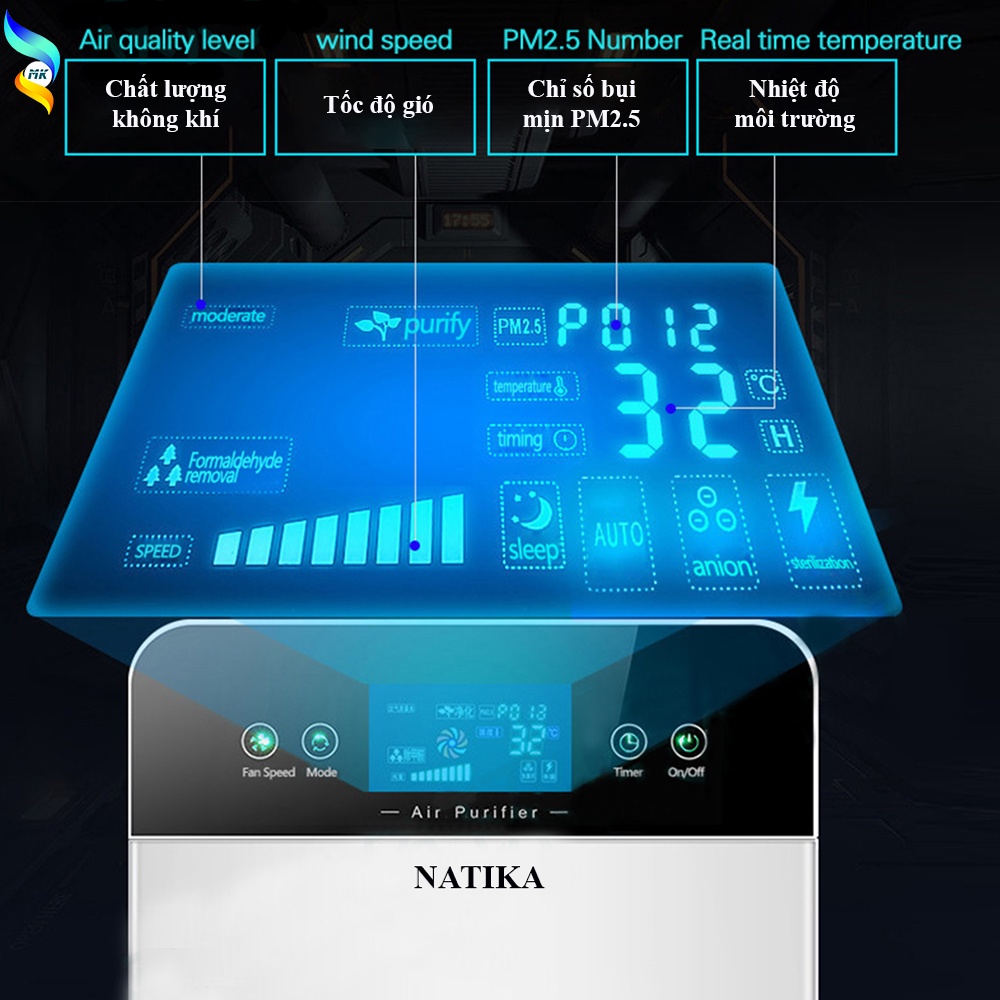 Giới thiệu Máy Lọc Không Khí ion âm kèm UV Diệt Khuẩn Natika, Lọc Bụi Mịn Pm2.5, Formaldehyd, Khử Khuẩn, Khử Mùi.[FreeShip40k]