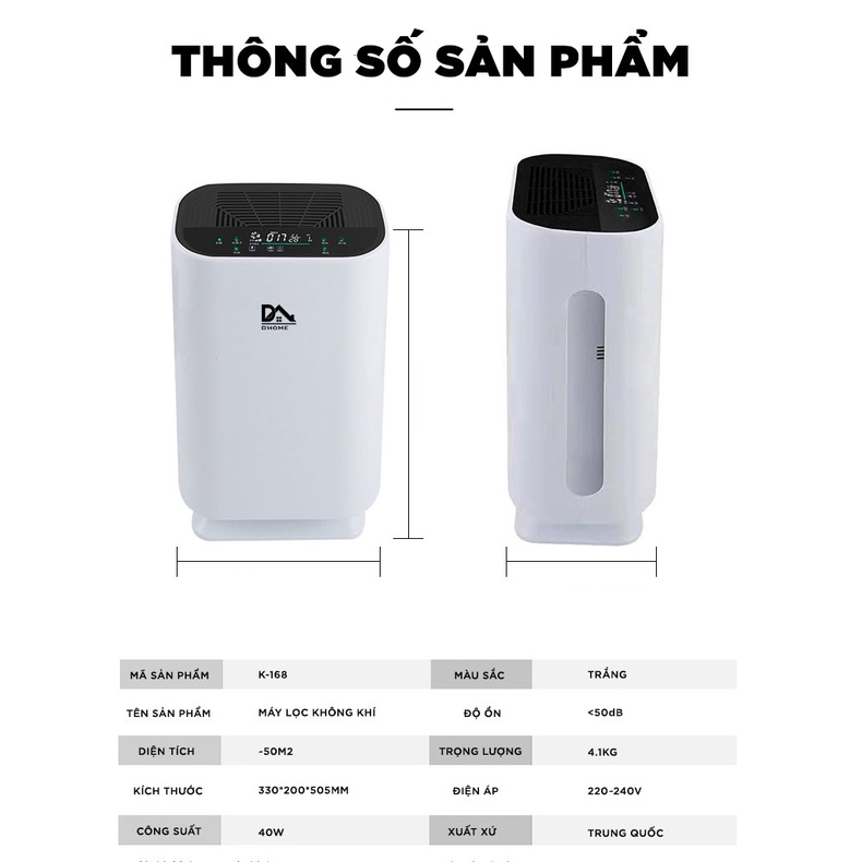 Thiết Bị Điện Gia Dụng > Thiết bị điện gia dụng nhỏ > Thiết bị xử lí không khí > Máy lọc không khí || Máy Lọc Không Khí Ion Âm Thông Minh Dhome K-168, Lọc Khói Bụi Và Vi Khuẩn, Bụi Mịn PM2.5 Màn Hình Cảm ỨngCòn hàng