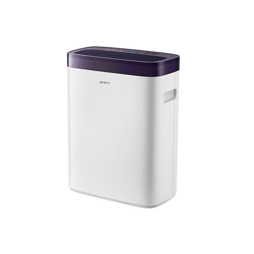 Máy lọc không khí thông minh JIMMY AP36 có kích thước 37 x 20 x 48 cm và nặng 5 kg. Mặt trên có màu tím hoặc trắng. Trên cùng là giao diện điều khiển với các nút cảm ứng, vào ban đêm nó giảm độ sáng nên không gây mất tập trung.