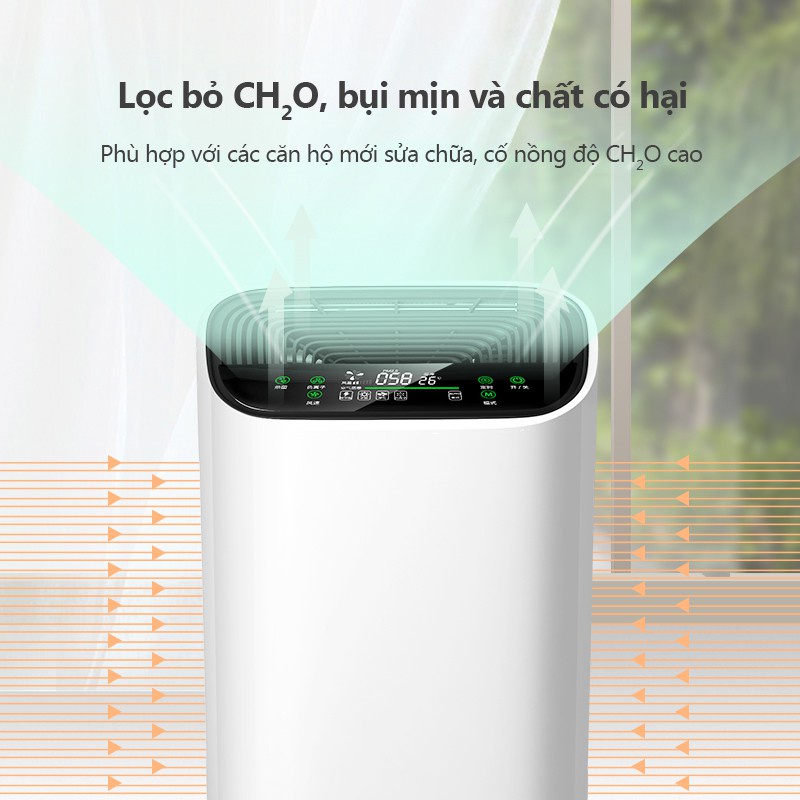 - Lọc và loại bỏ: tóc, bụi, phấn hoa, khói, Formaldehyde, Benzene, Xylene,TVOC…