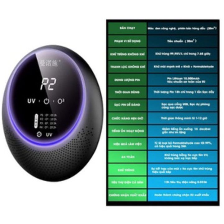 – Cách hoạt động : Sử dụng công nghệ tia UV và Ozone an toàn để khử khuẩn và khử mùi lọc không khí không để lại chất độc hại, Không cần đến màng lọc.