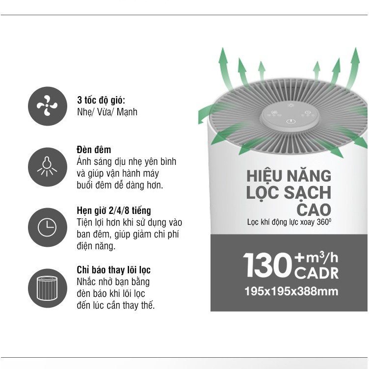 Công suất lọc: CADR 130㎥/h