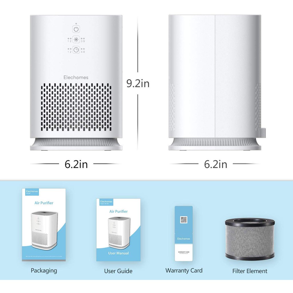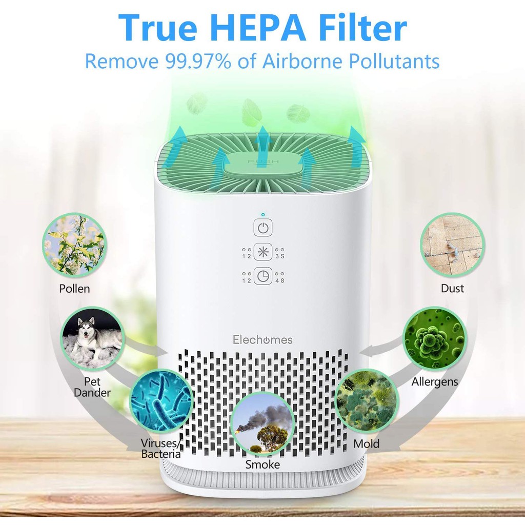 - Bảo hành (Phiếu hãng tại Việt Nam) Không khí trong nhà thường bị ô nhiễm do phân tử bụi, phấn hoa, lông động vật, mùi, các loại khí gây hại cũng như vô số vi khuẩn và virus. Máy làm sạch không khí Elechomes giúp thanh lọc không khí xung quanh với hệ thống bộ lọc 3 lớp cùng với ánh sáng UV-C được tích hợp bên trong và thiết kế sang trọng.