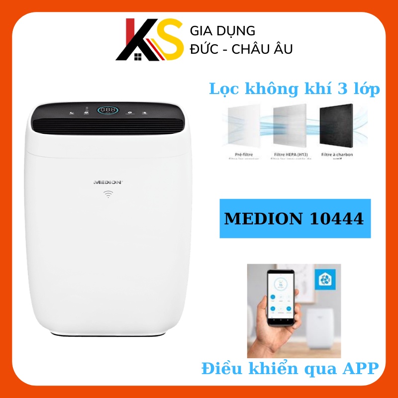 Thiết Bị Điện Gia Dụng > Thiết bị điện gia dụng nhỏ > Thiết bị xử lí không khí > Máy lọc không khí || Máy lọc không khí MEDION MD 10444, có 3 màng lọc bao gồm bộ lọc Hepa H14 - diện tích 60m2, hàng ĐứcCòn hàng