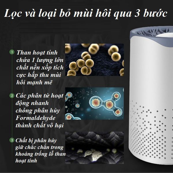 - Lọc không khí với Ttia UV , bộ lọc bảo vệ và cotton than hoạt tính thiết kế đa lớp, loại bỏ khói, mùi hôi, vi khuẩn, formaldehyde, toluene và các chất có hại trong không khí hiệu quả.