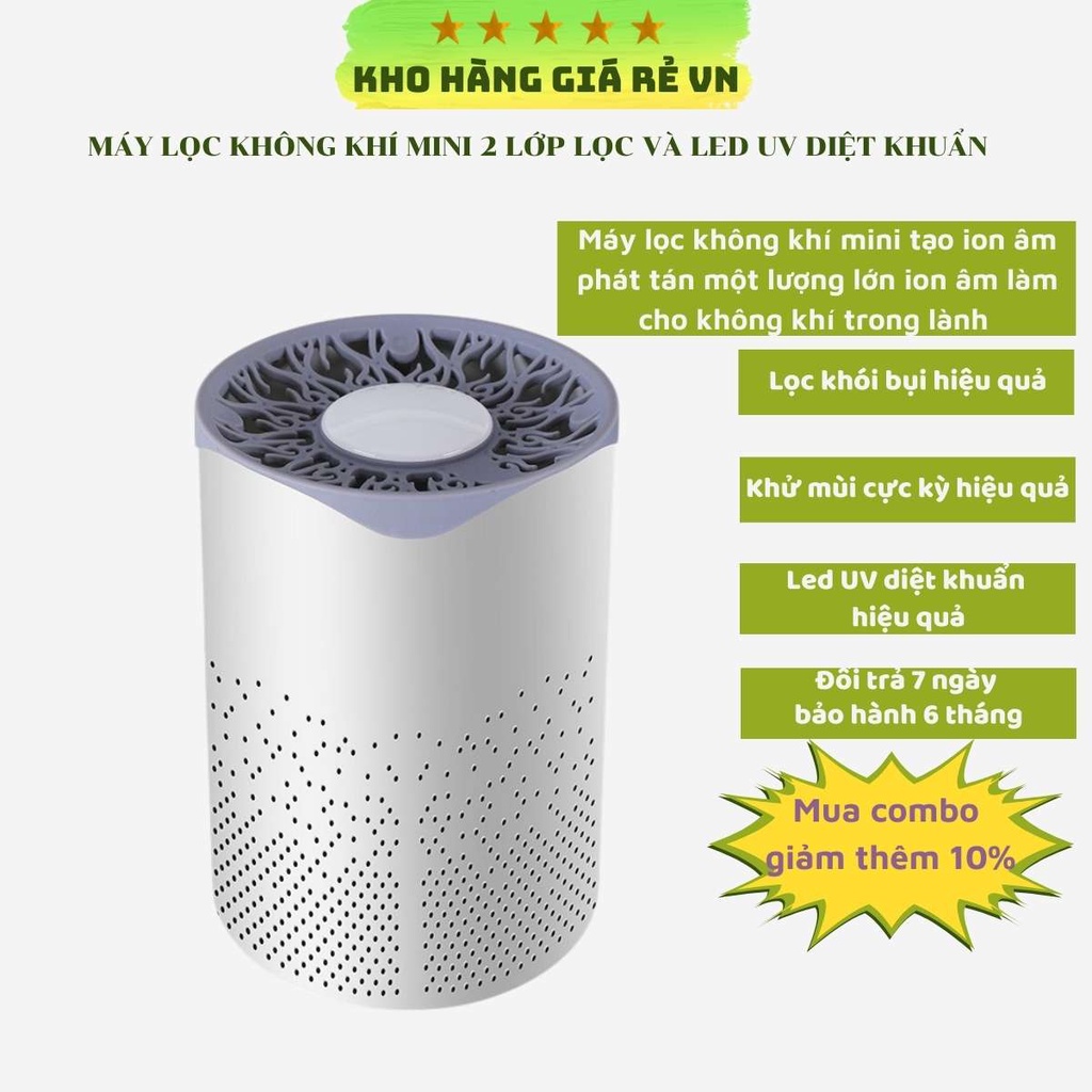 Máy lọc không khí mini máy khử mùi phòng ngủ 2 lớp lọc khử khuẩn bằng đèn tia UV và ion âm kho hàng giá rẻ VN
