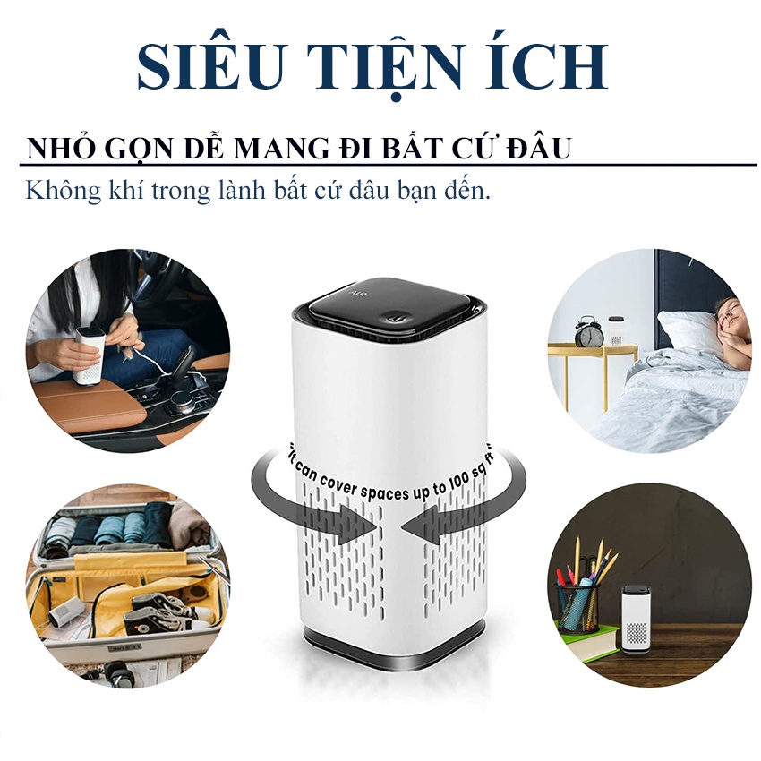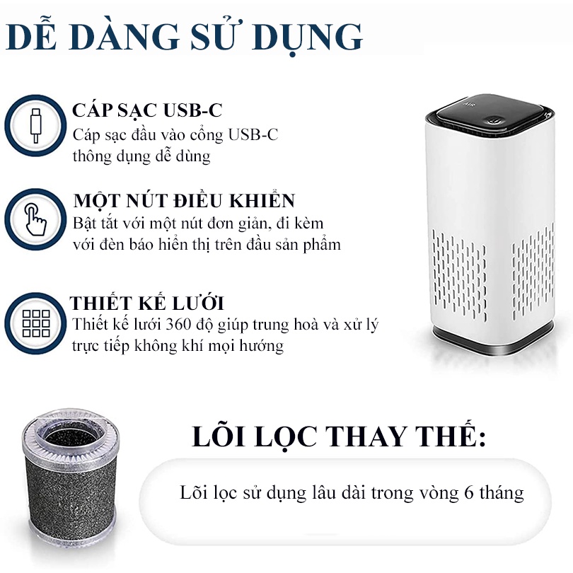 Máy Lọc Không Khí Mini Văn Phòng, Xe Hơi Di Động Cổng Sạc USB-C Giúp Lọc Khử Mùi Không Khí Xung Quanh Bạn✅ Thiết kế nhỏ gọn có thể đặt ở bất cứ đâu bạn đến.
