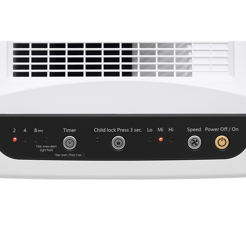 Bảng điều khiển cho phép tùy chọn 3 mức độ lọc không khí khác nhau: thấp - trung bình - cao.