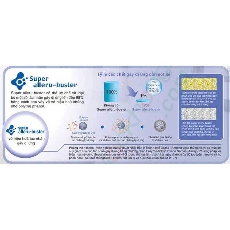 Sử dụng hệ thống 04 màng lọc độ bền cao (Lọc thô -> Lọc Hepa -> Lọc than Carbon -> Lọc tạo ẩm) giữ lại các loại bụi bẩn, vi khuẩn, phấn hoa, nấm mốc, khử mùi hôi … tạo độ ẩm trong không khí. Đặc biệt màng lọc HEPA được làm bằng chất liệu Composite siêu bền đồng thời được tẩm 03 tinh chất chuyên diệt khuẩn. Lưới lọc HEPA lọc được bụi PM 2.5.