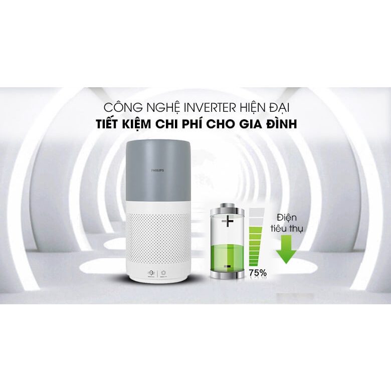 Máy lọc không khí Philips còn được trang bị công nghệ Inverter giúp máy hoạt động êm ái, tiết kiệm điện, tối ưu chi phí của gia đình.